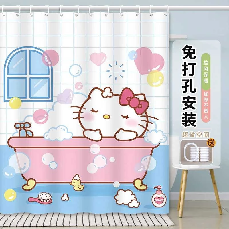 🔥 Hoạt Hình Hoạt Hình Hello Kitty Tắm Rèm Phòng Tắm Bạt Nhà Vệ Sinh Phong Cách Nhật Bản Đục Lỗ Vách Ngăn Rèm Dễ Thương đang giảm giá!