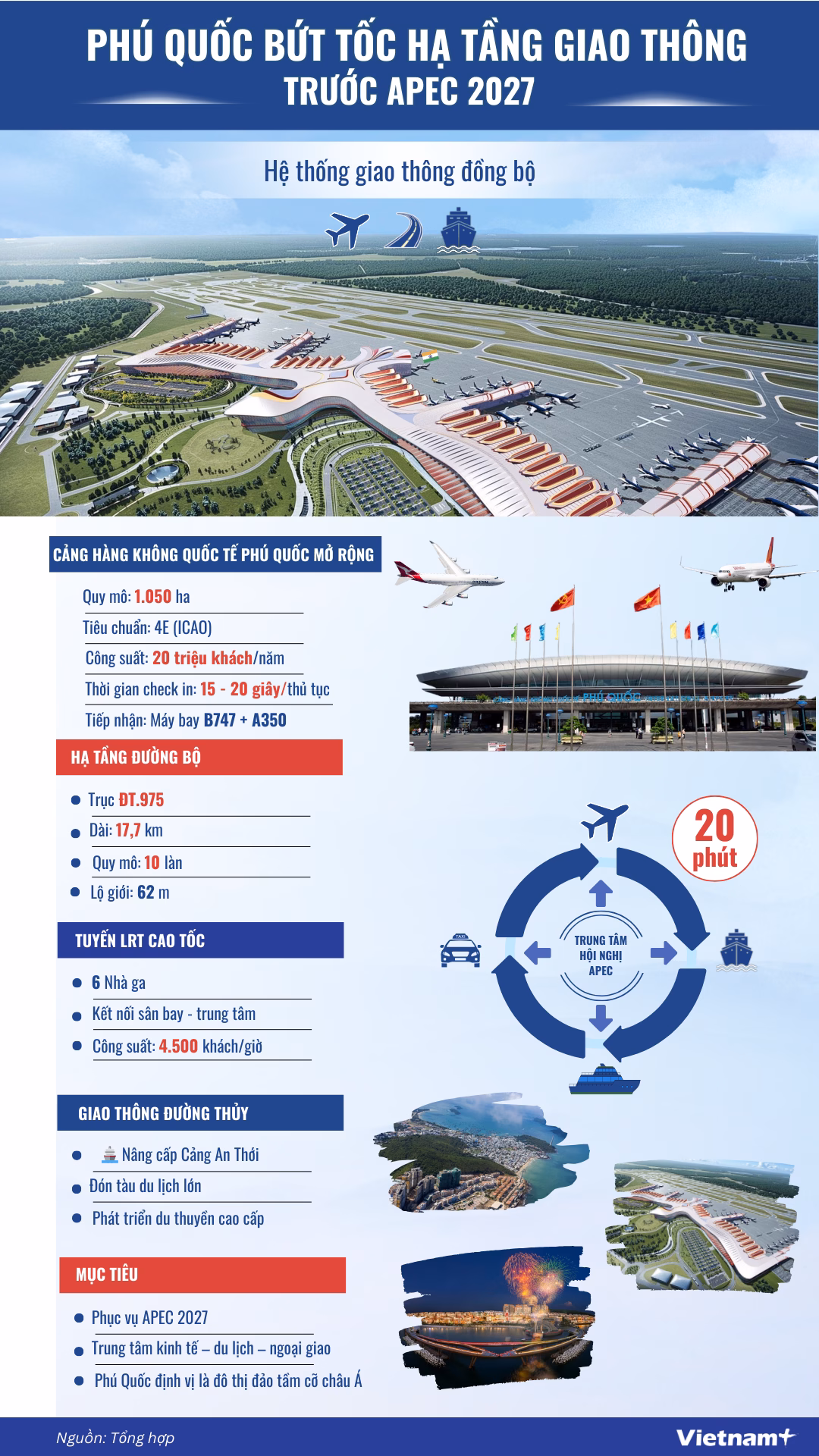 Chuẩn bị cho sự kiện APEC 2027, Đảo Ngọc Phú Quốc đang chứng tỏ kinh nghiệm phát triển đột phá bằng việc tăng tốc hoàn thiện hạ tầng giao thông đa phương thức, hướng tới kết nối toàn cầu.