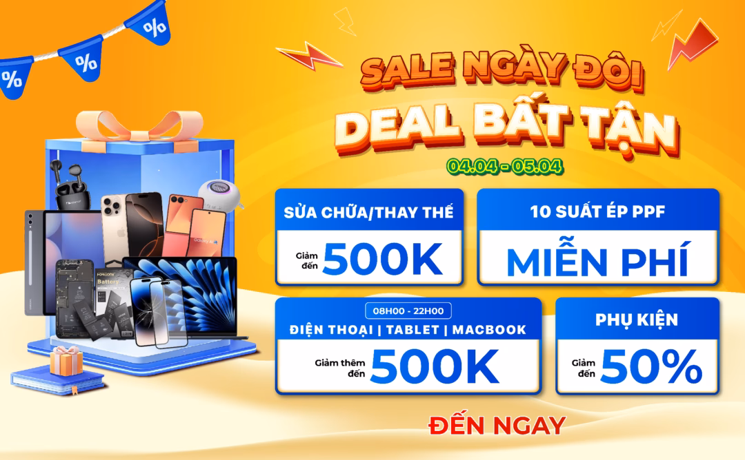 Tận dụng đợt sale đôi 4.4, người dùng đang đổ xô nâng cấp iPhone LikeNew và thực hiện các dịch vụ sửa chữa thiết bị với mức giá ưu đãi kỷ lục cùng nhiều đặc quyền hấp dẫn.